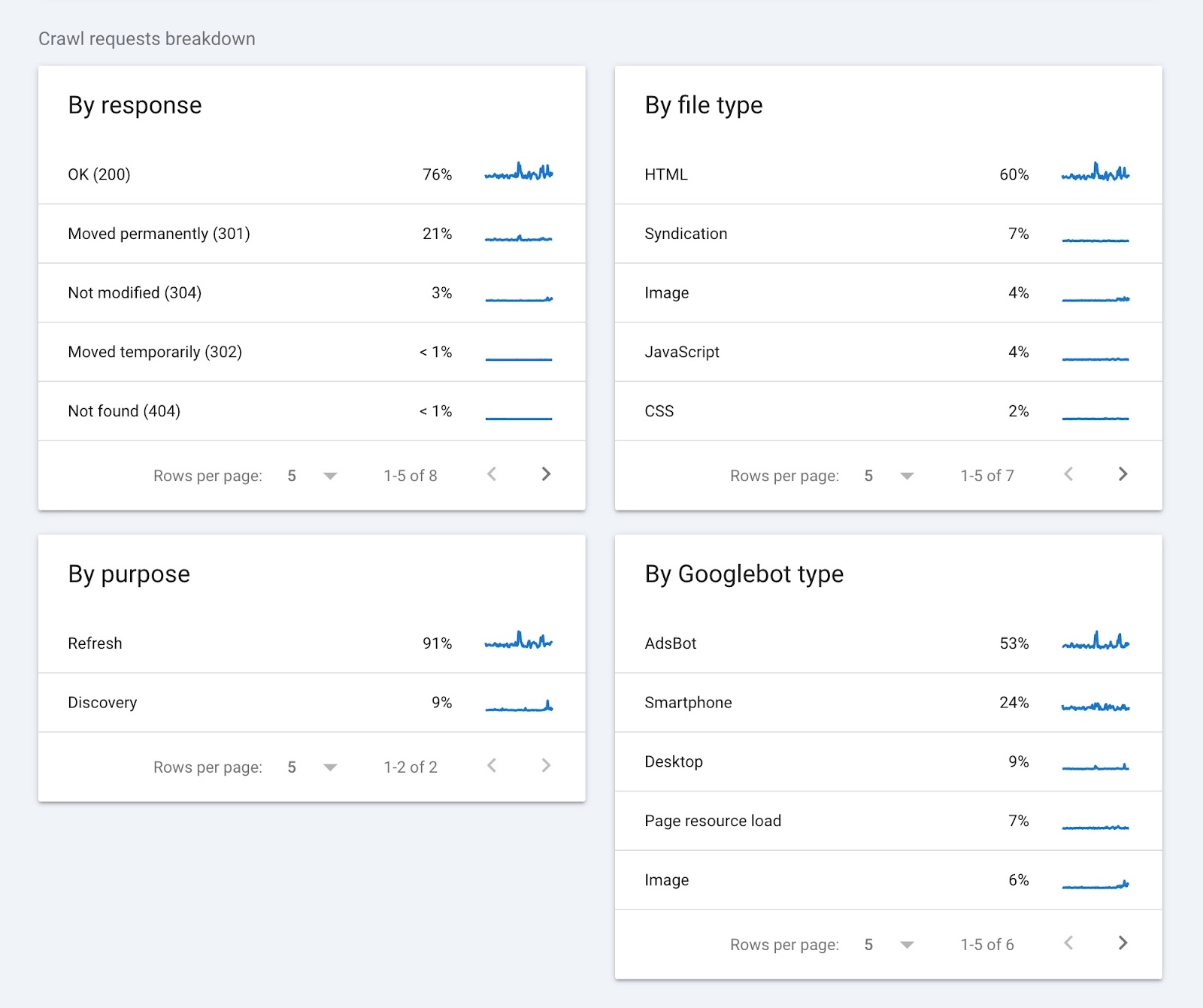Go to the settings of your Google Search Console account and have a look at the “over-time charts” to get an idea about the number of times Google has made a crawl request on your site in the past 90 days. In addition to this, check the host status to see how easy it is to crawl through the site. Moreover, have a look at the crawl request breakdown for a detailed report.